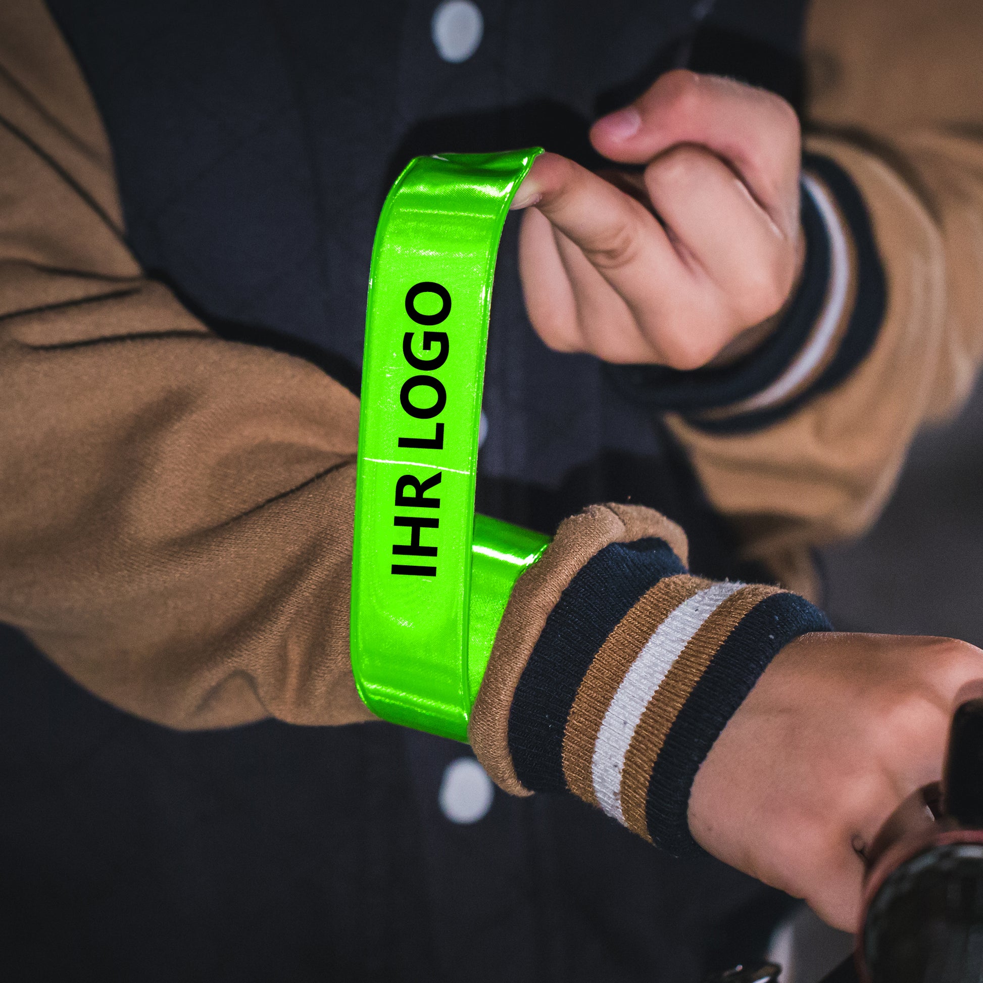 Sie haben die Wahl aus fünf Längen (auf Anfrage auch bis 50 cm Länge und in 4 cm oder 5 cm Breite erhältlich.). Die integrierte Metallfeder sorgt für ein einfaches Umschnappen am Handgelenk, und die Folie ist direkt bedruckbar – ideal für Ihr Logo oder Ihre Werbebotschaften.